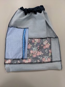 This quick easy drawstring bag is the perfect travel companion. There is an internal pocket that the bag will fold up into for a compact backpack on the go. All parts of the bag are constructed on the Overlock Machine including flatlock hems, straps and a zippered pocket.